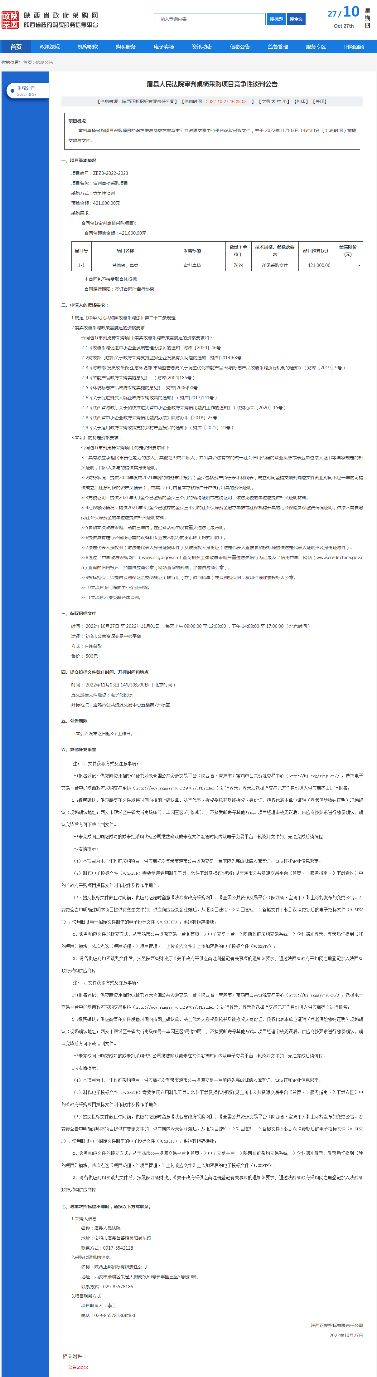 眉縣人民法院審判桌椅采購項目競爭性談判公告