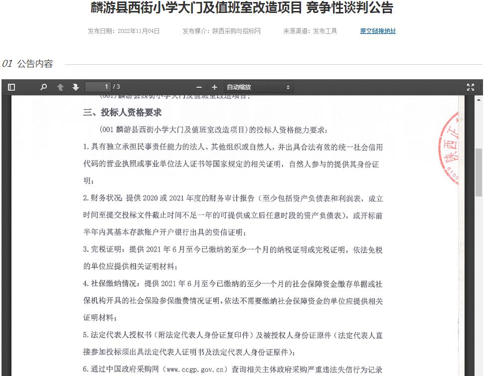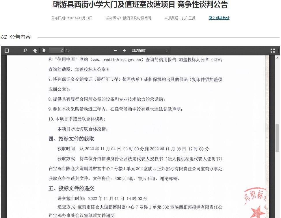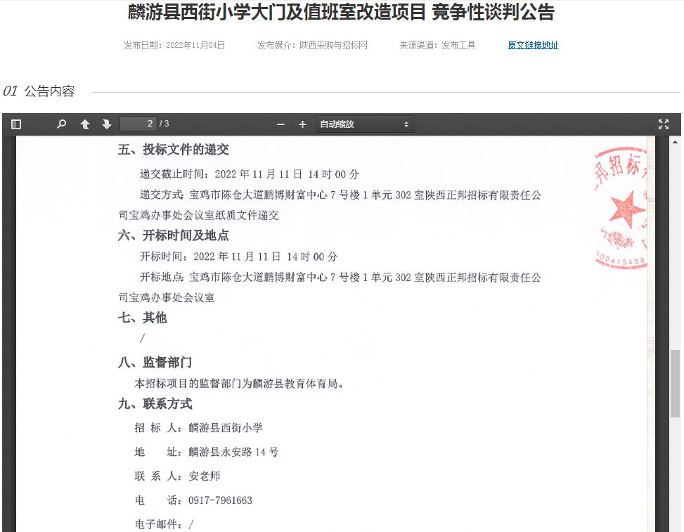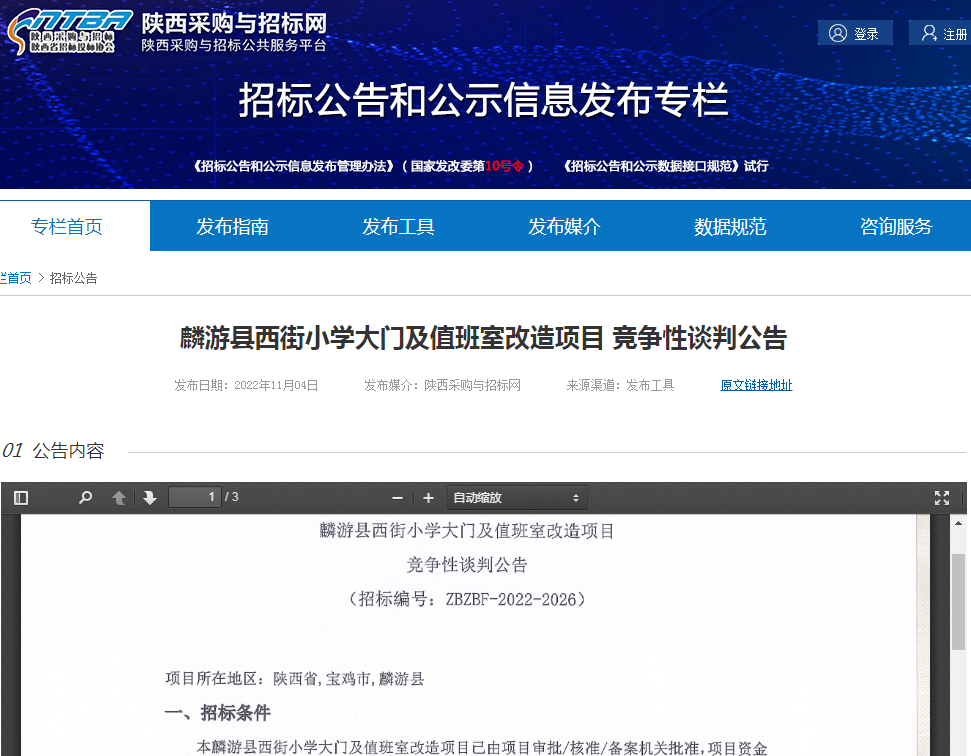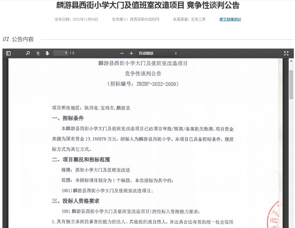 麟游縣西街小學(xué)大門及值班室改造項(xiàng)目 競(jìng)爭(zhēng)性談判公告
